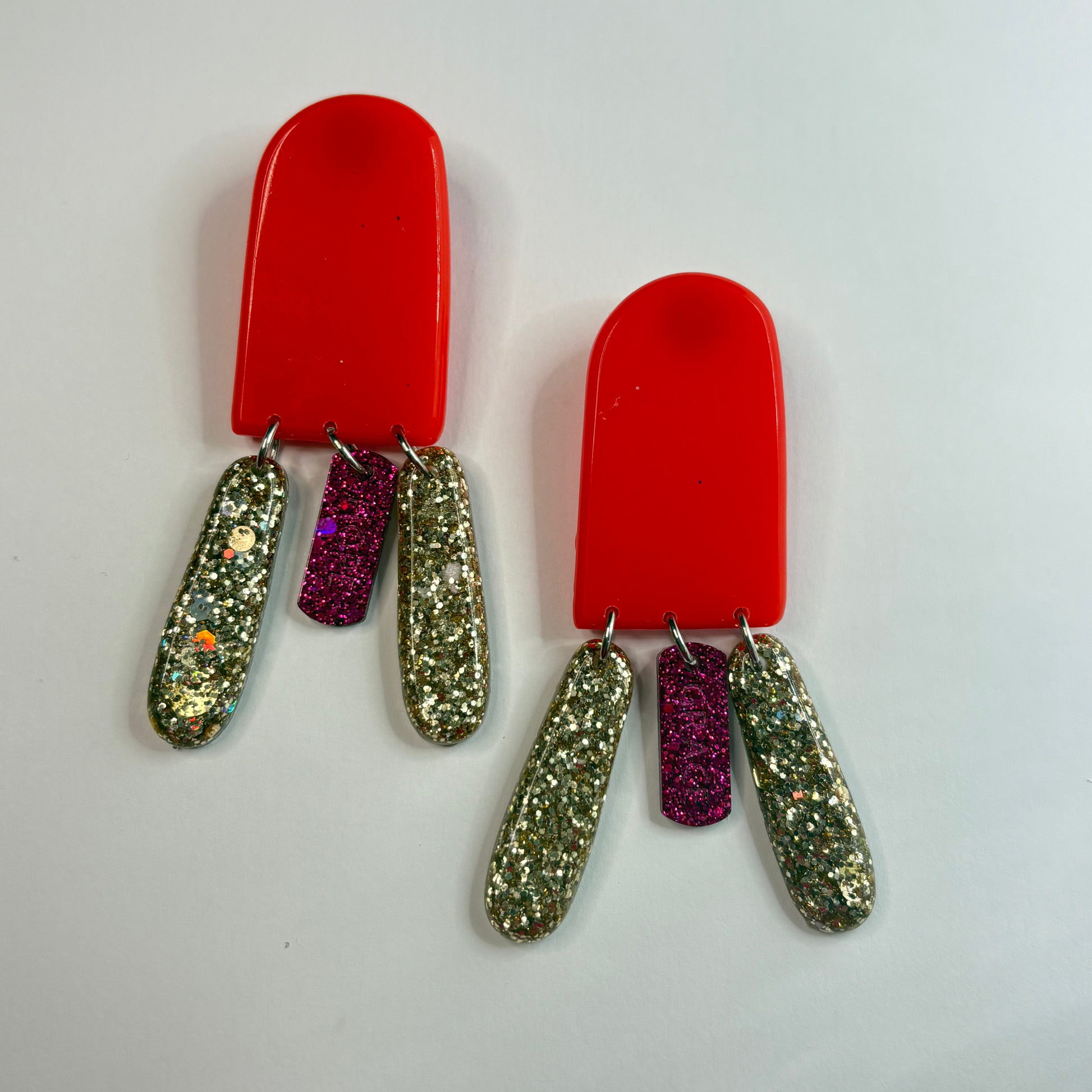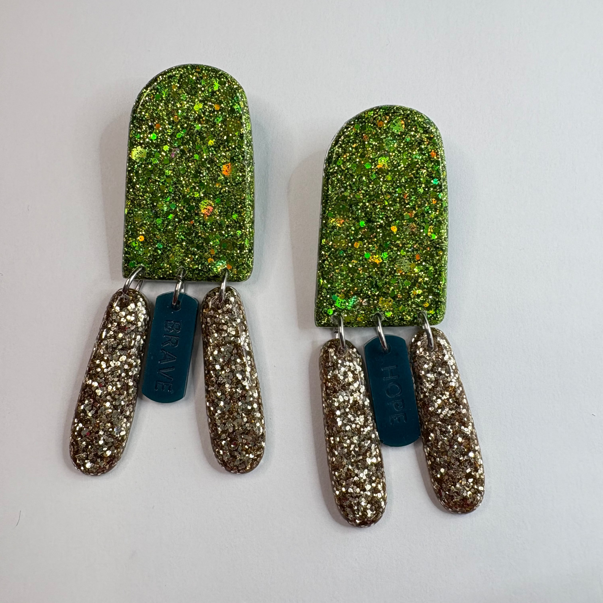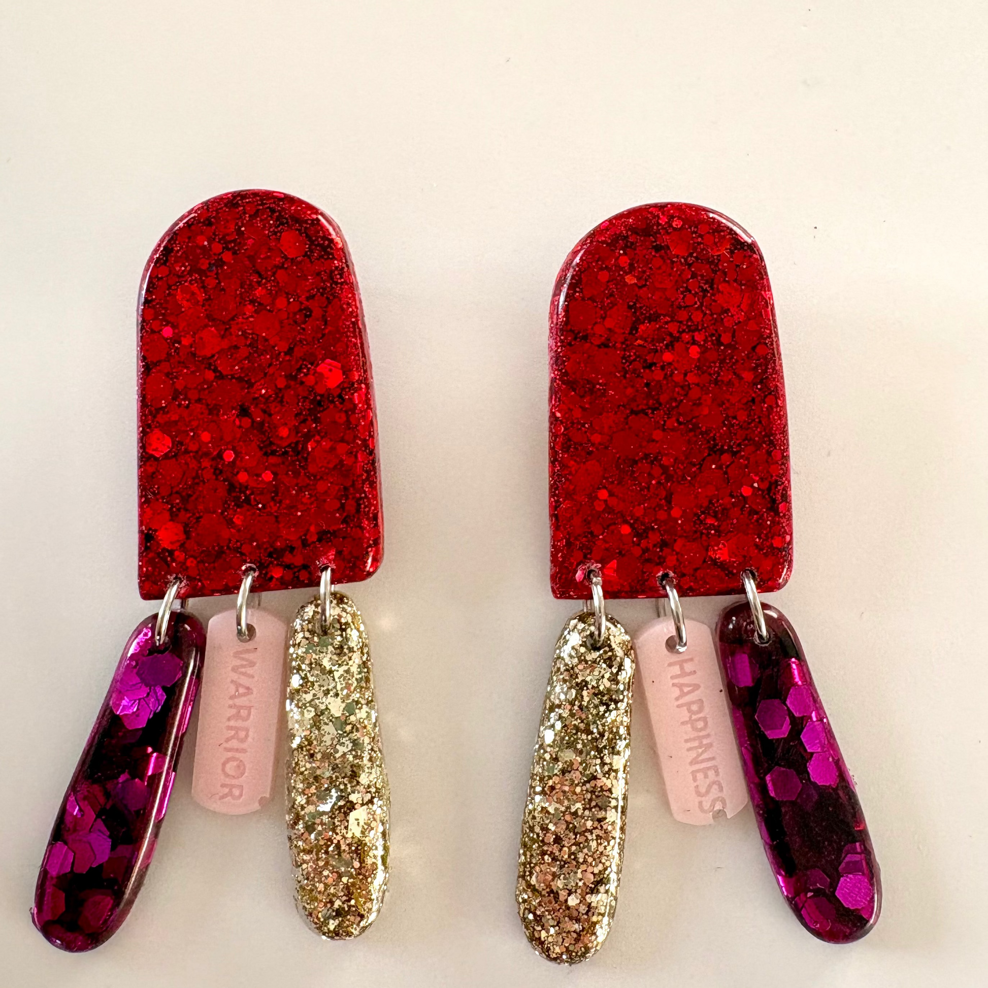 Des boucles d'oreilles a messages . Une forme minimaliste affirmée et trois pampilles avec un message différent sur les deux boucles. Un vrai manifeste de bonheur a diffuser